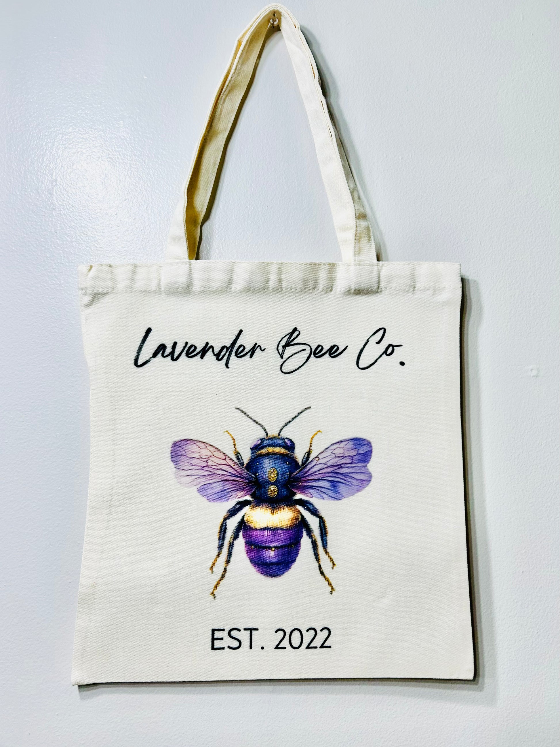Carry your essentials in style with our Lavender Bee Co. tote. Made from 15% cotton & 85% Polyester, this bag features our signature bee design and sturdy handles—perfect for everyday errands, farmers’ markets, or as a reusable gift bag. A practical yet charming way to show your love for Lavender Bee Co.