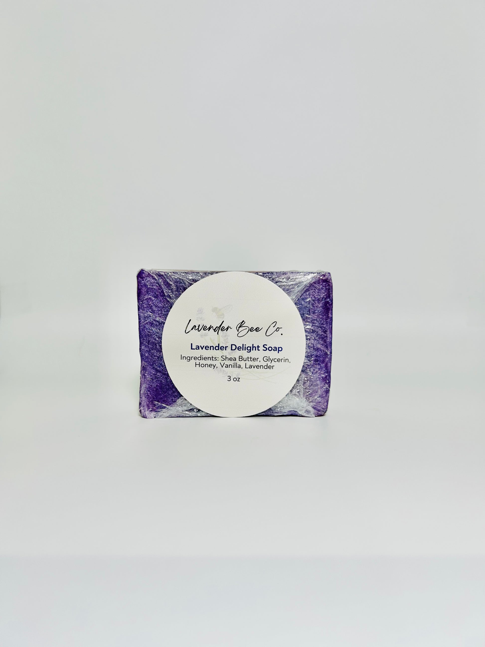 Enjoy the relaxing scent of Lavender Delight. This soap is made with Lavender oil, our local honey, which increases the lather content due to its higher sugar content, and shea butter to moisturize your skin.